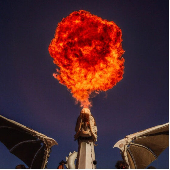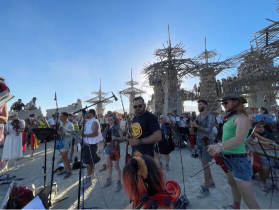 Each year we go out, the Black Rock Philharmonic tries to perform one concert out in the Playa at a large art piece. Such past concert sites have included La Victrola, The Orb (sunrise; dawn is tough lol), The Folly (yes please!), and Paradisium (The trees we love), The Chapel of Babel (the best limo fires and dust), and Naga (Word’s Best Sea Monster).